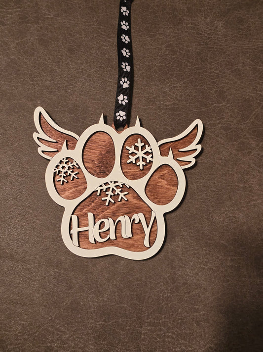 Personalized Paw Print Christmas Ornaments cat, dog wings Memorial