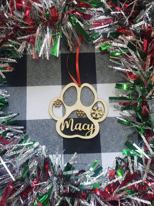 Personalized Paw Print Christmas Ornament with snowflakes Pet