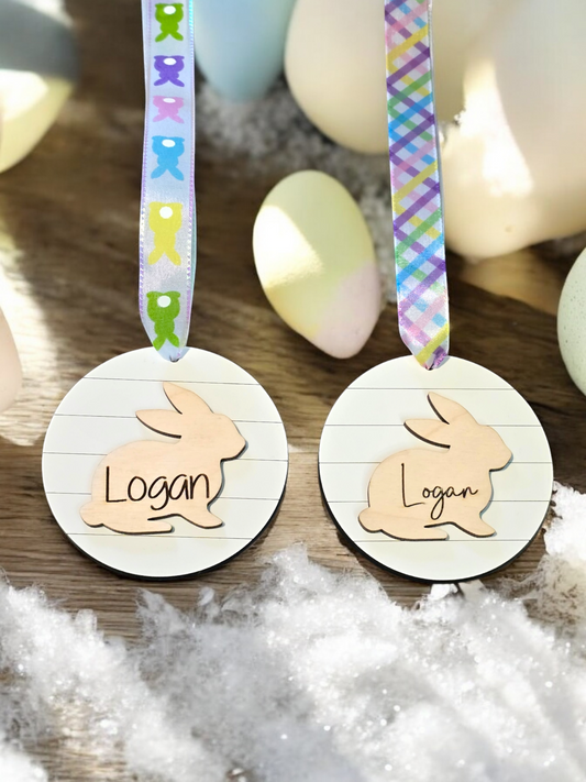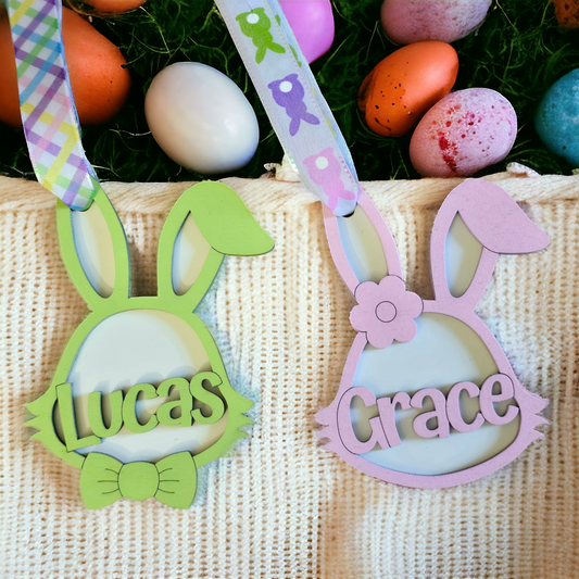 Easter Bunny Basket Tags Bowtie, Flower or Bow Personalized