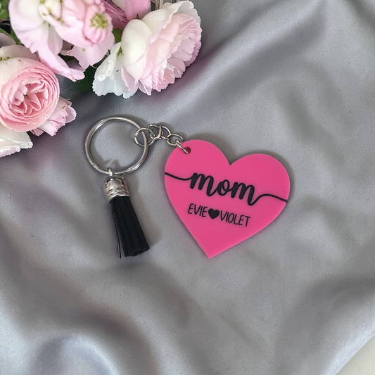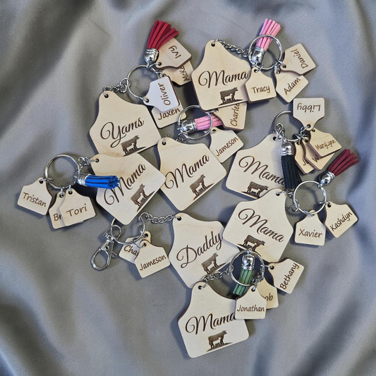 Mama Ear Tag Highland Cow Personalized with kids Keychain