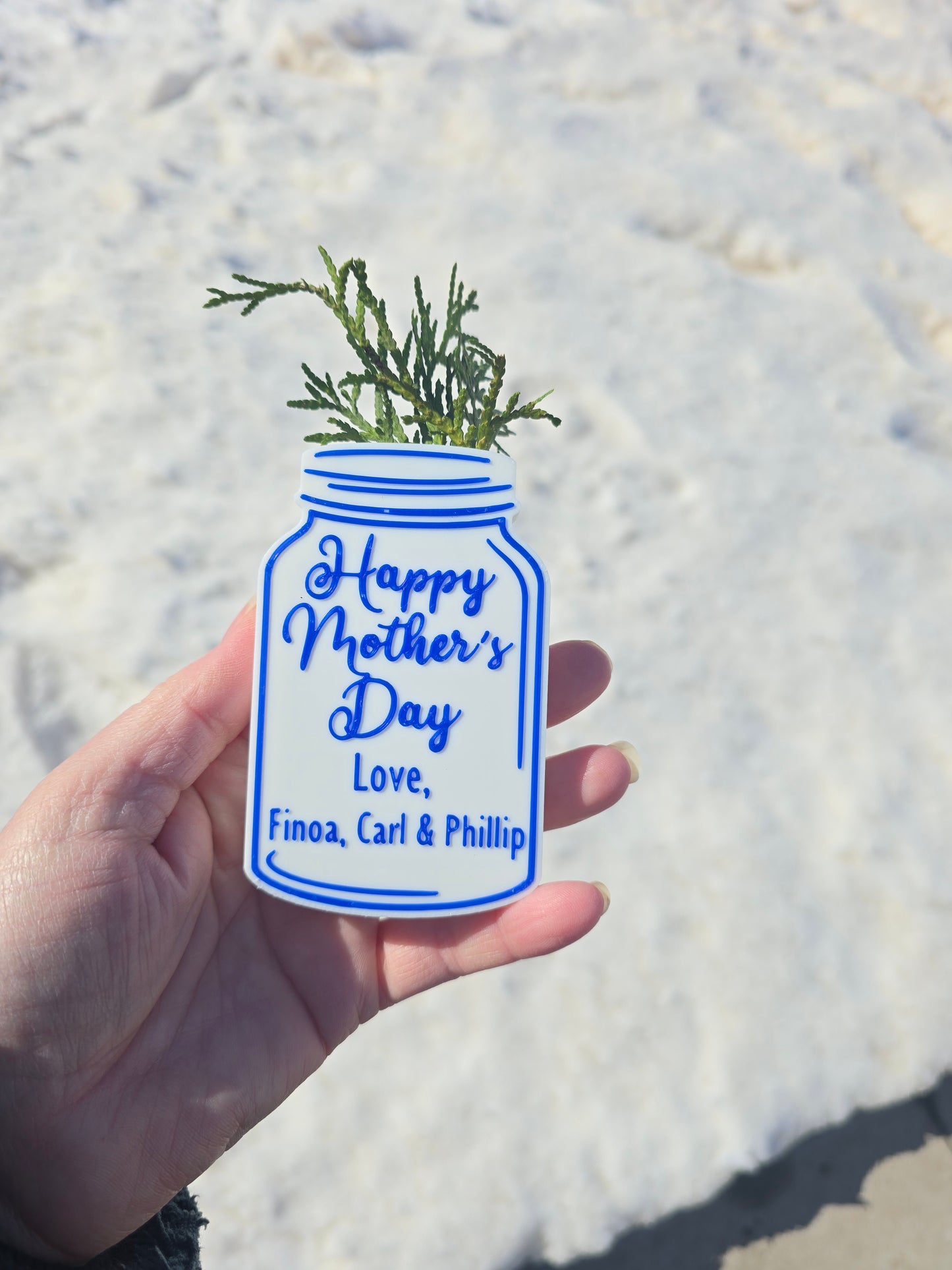 3D printed Happy Mother's Day Mason jar magnet flower holder personalized