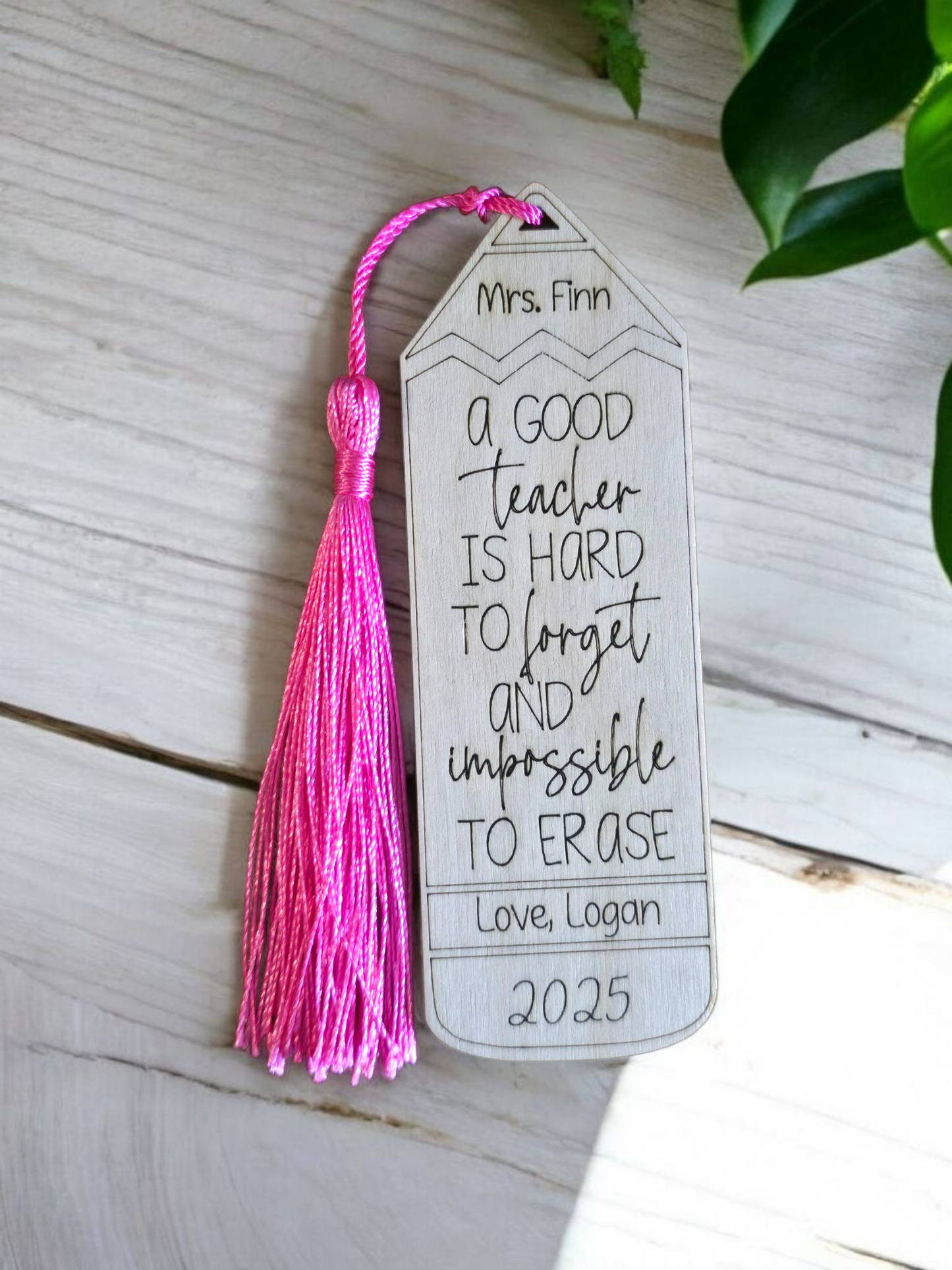 A good teacher is hard to forget and impossible to erase pencil personalized bookmark