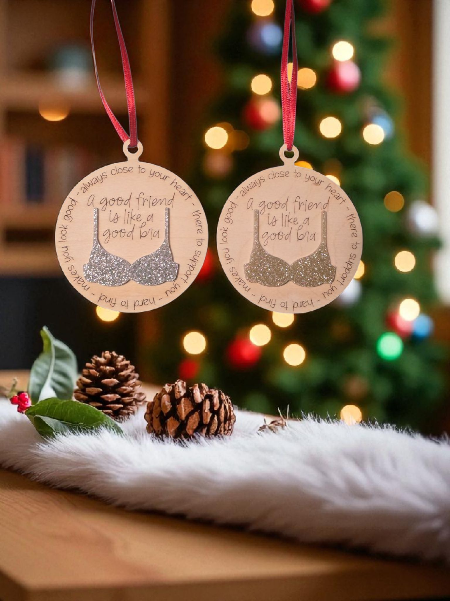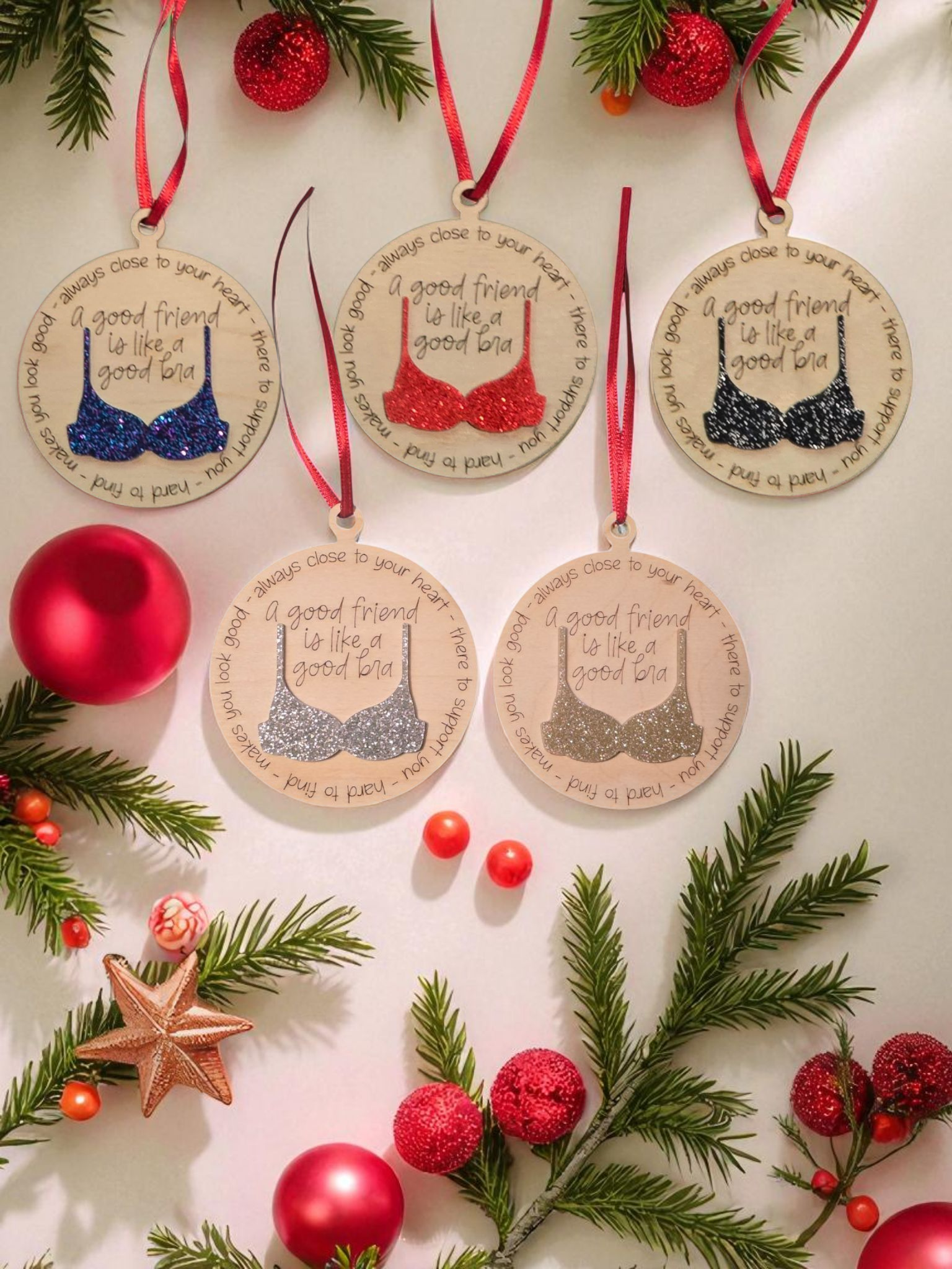 MOQ-5 Acrylic glitter bra A good friend is like a good bra Christmas Ornament