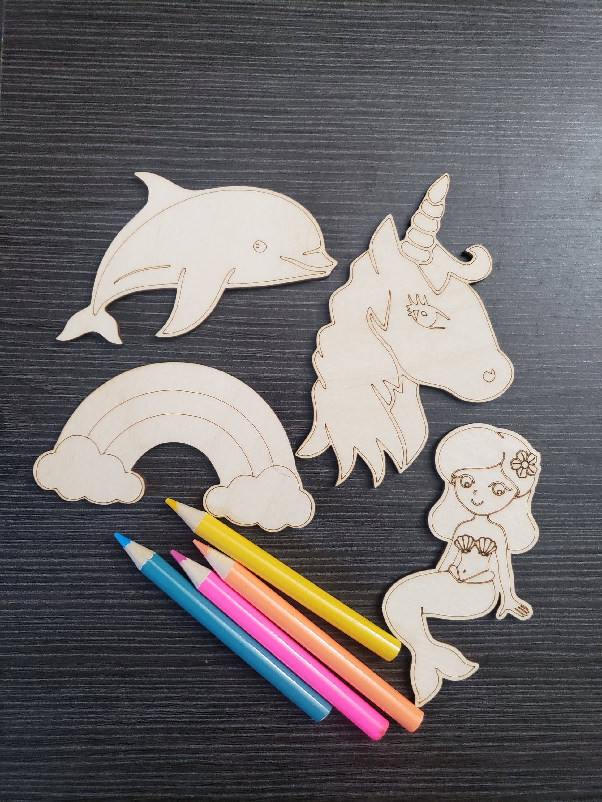 $6 per set. Set includes 4 wood pieces, 4 random color pencils