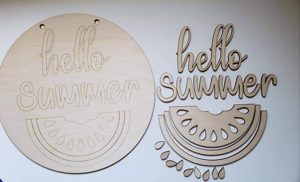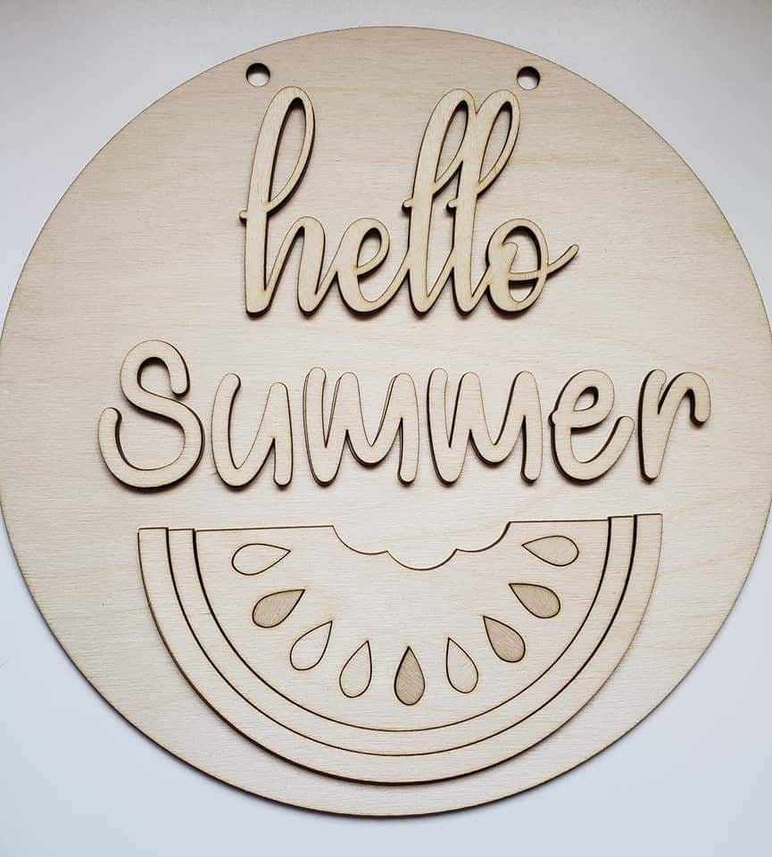 Hello Summer Watermelon Wood cutout DIY Design is scored on round for easier placement. -•Will need painted and glued. -•