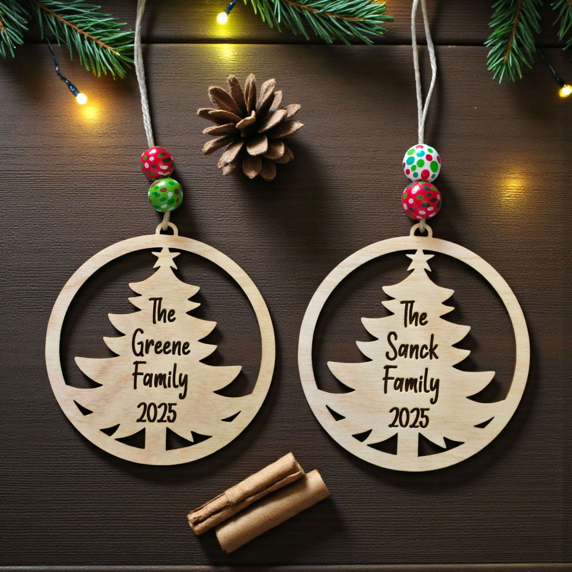 Family name Christmas tree with year personalized