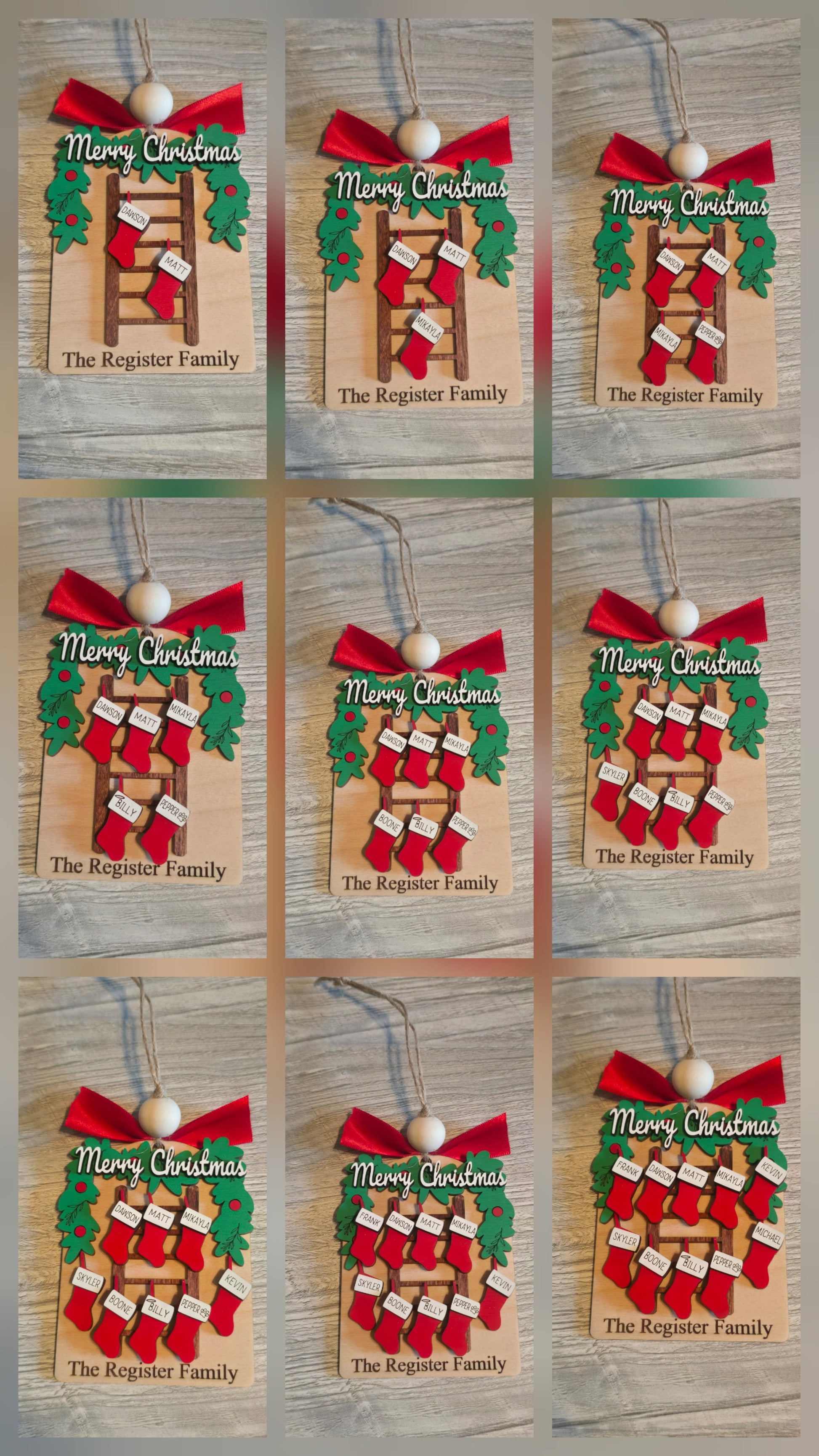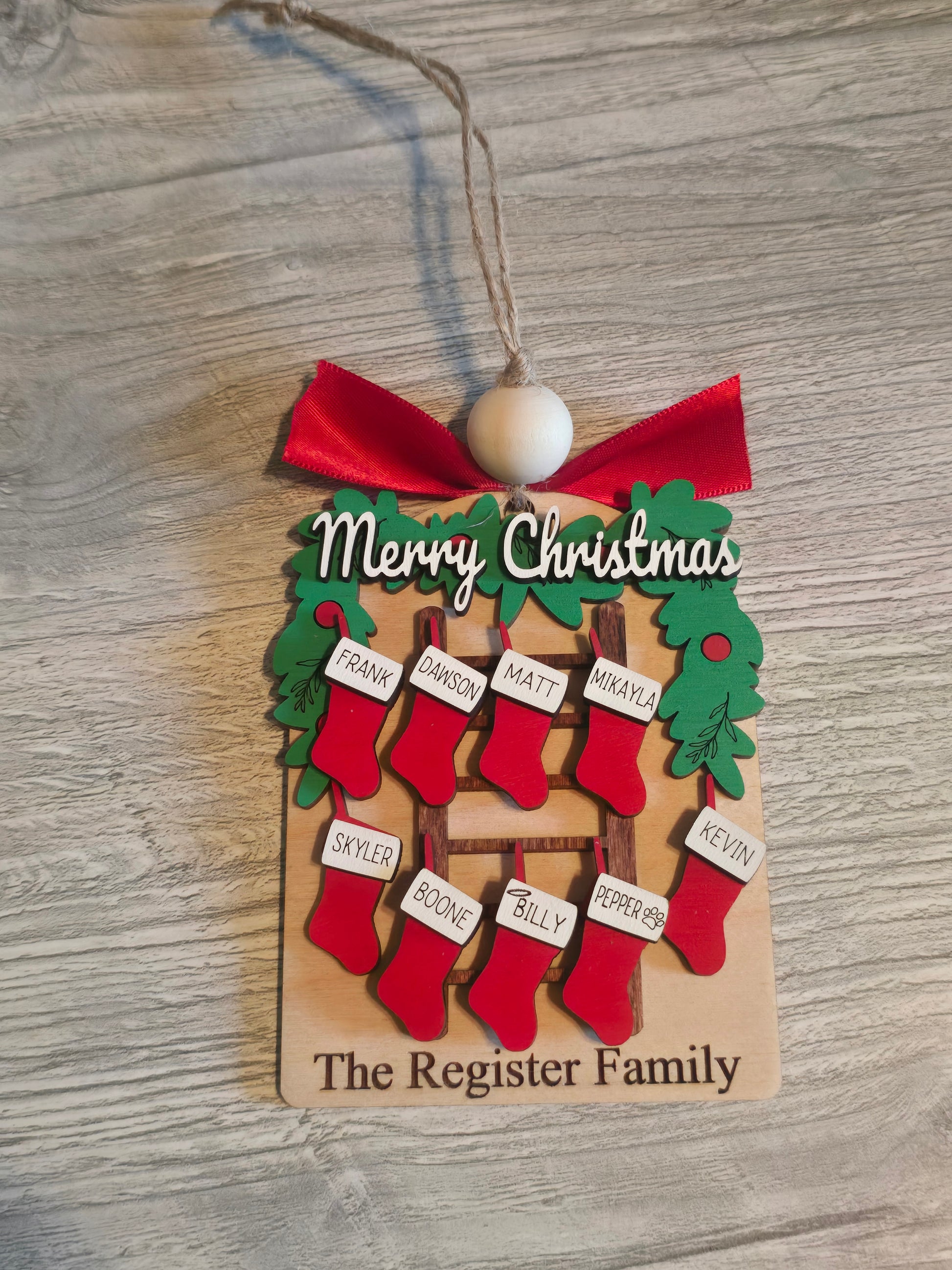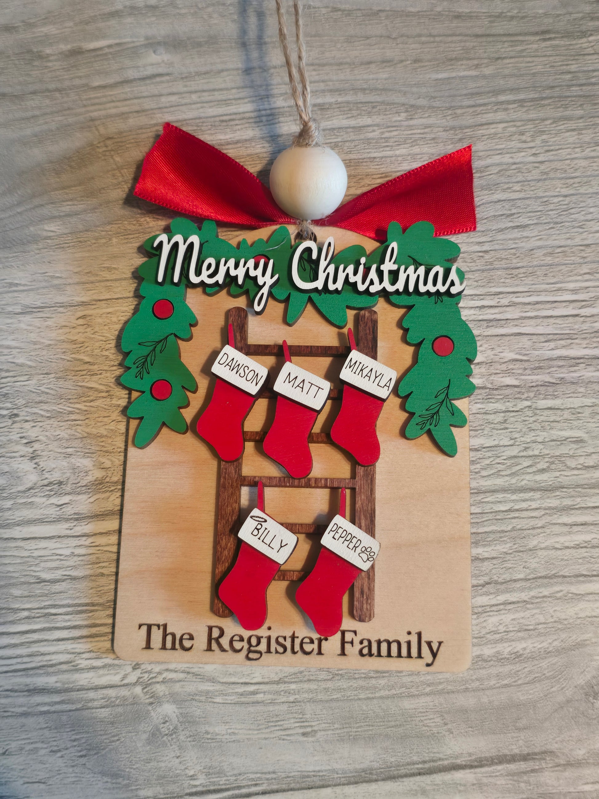 Ladder stocking wreath Merry Christmas Ornament Personalized