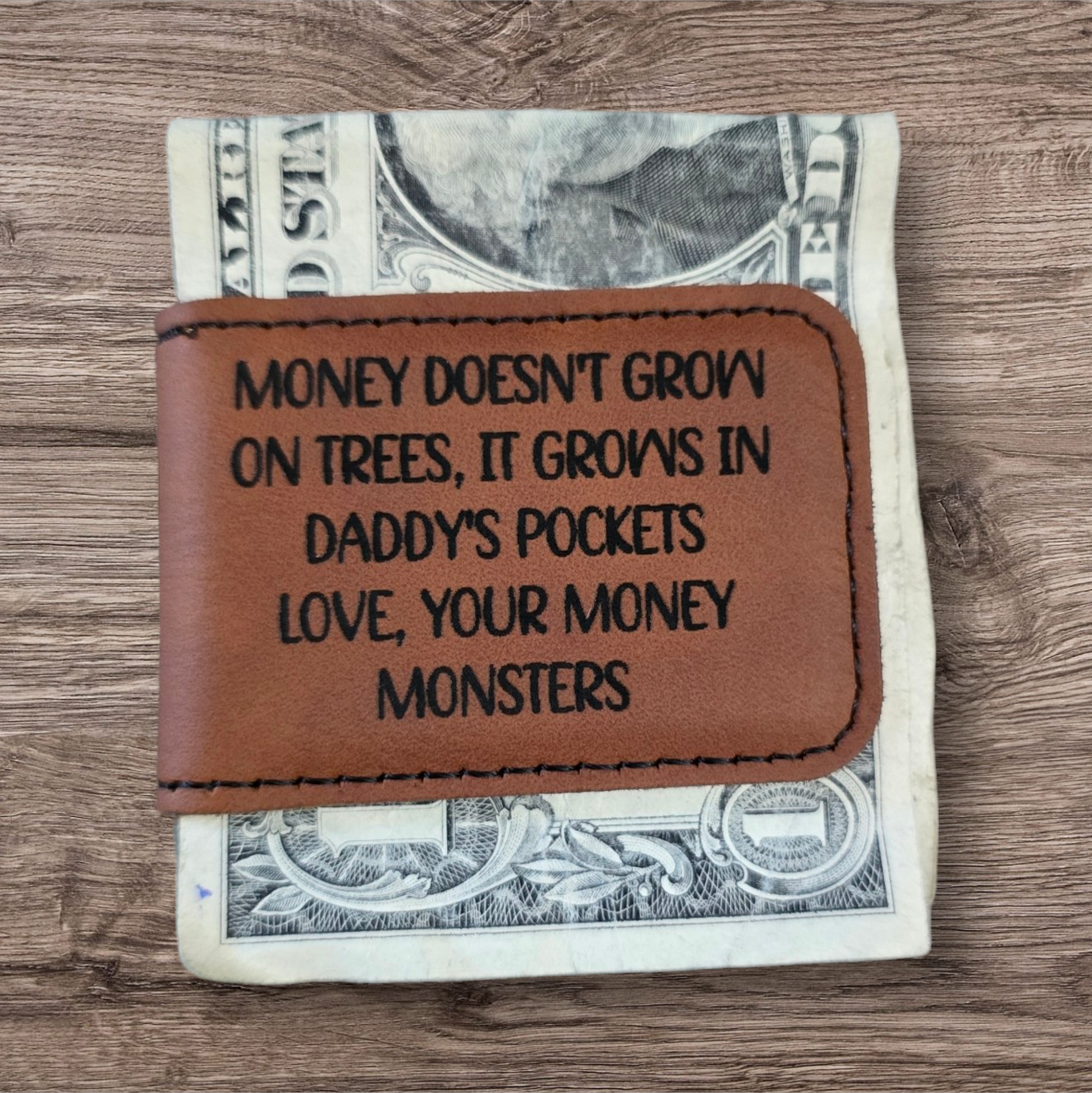 Money doesn't grow on trees it grows in Daddy's pockets Personalized money clip