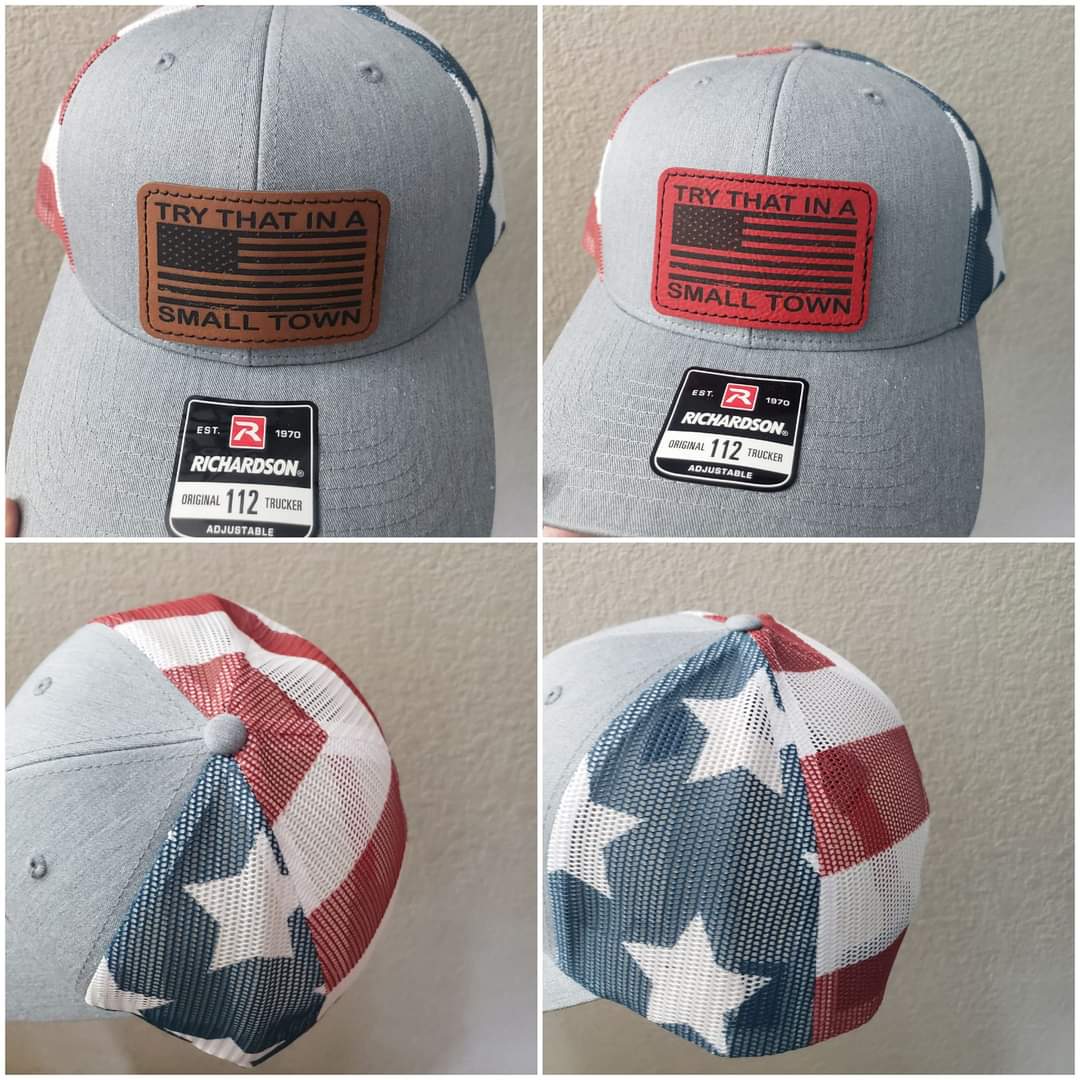 TAT- 5-8 Business Day Try that in a small town Flag colored Richardson Hat distressed flag patch