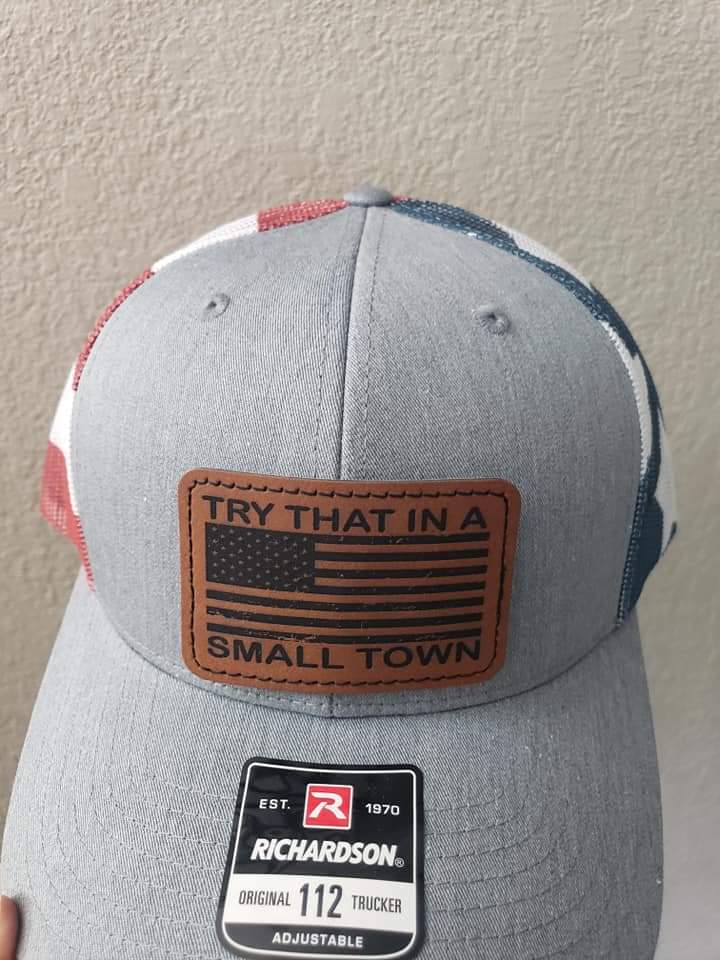 Try that in a small town Flag colored Richardson Hat distressed flag patch