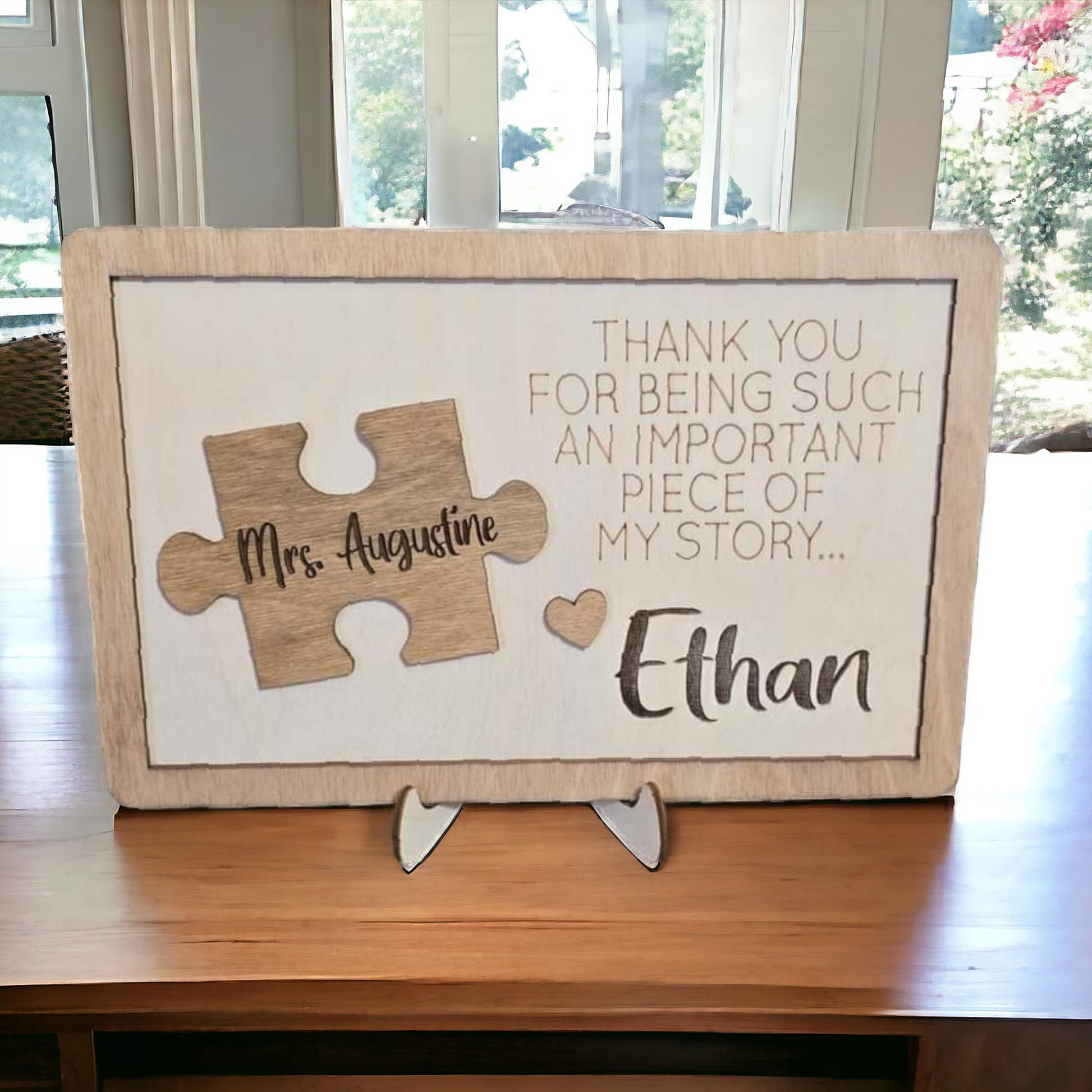 Thank you for being such an important piece of my story small sign plaque Personalized